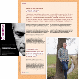 GASTBLOG: MIJN EERSTE KEER Zooo sexy? “Alstublieft”, zegt de baliemedewerkster met een Belgisch accent in het UZ Gent.Het is even na twee uur en ik sta met een potje in mijn handen. “Einde van de gang links, dan derde deur aan de linkerkant”. Het klinkt zakelijk hoe ze het zegt.Ik